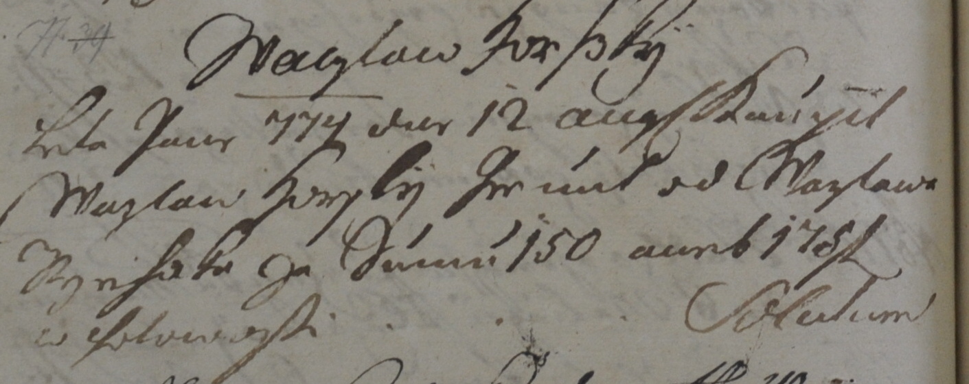 v gruntovní knize jsem narazila na záznam prodeje gruntu a cena je tam uveden 150 aneb 175 zlatých. Nevím proč. Majitel, který grunt prodával ho předtím zakoupil od svého otce za cenu 150 a žádné další podmínky jako povinnost někoho vyplatit nebo něco uhradit na gruntu neváznou.