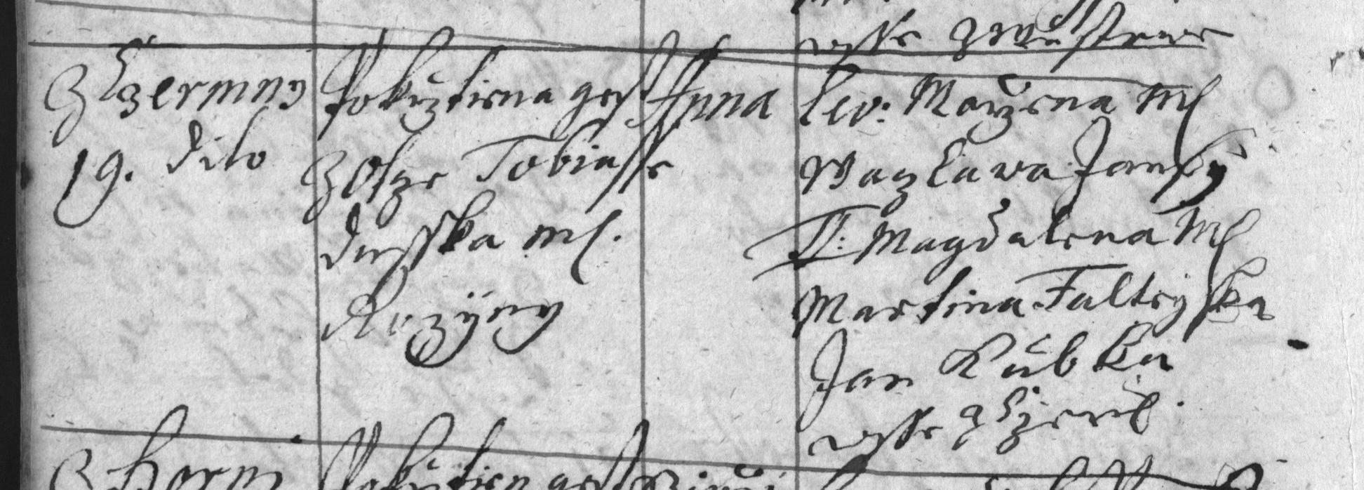 zadrhl jsem se na příjmení, které se několikrát opakuje a které nedovedu přečíst. Pátrám v rodech Dušků a Vašků a jména OTCŮ v uvedených přílohách narozených dětí mi je trochu připomínají. Uvádím tři, dle mého soudu, příklady stejných příjmení.