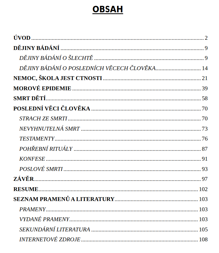 Pohled šlechty na poslední věci člověka prostřednictvím pramenů osobní povahy v raném novověku.