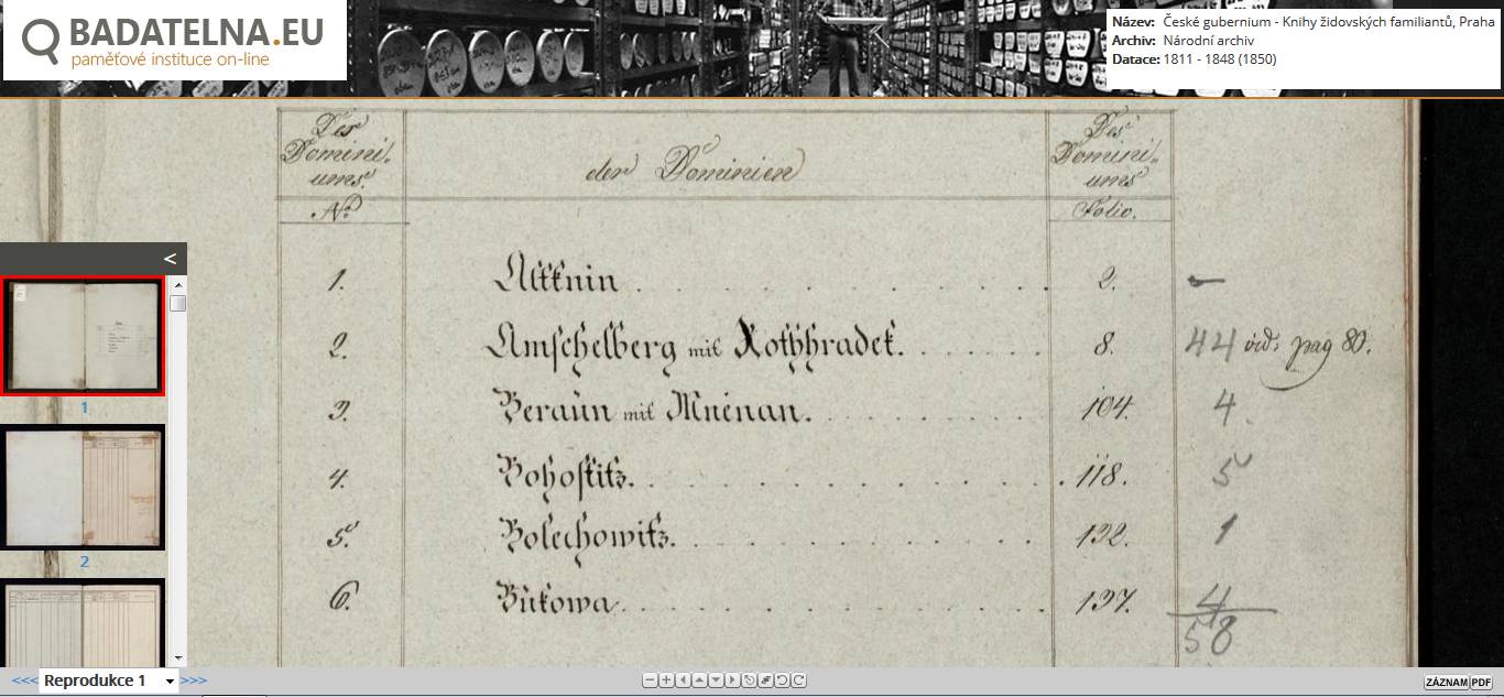 Novinka na stránkách Národního archivu. Pro badatele židovských rodin zpřístupněny familiantské knihy, které jsou řazeny podle krajů a panství.