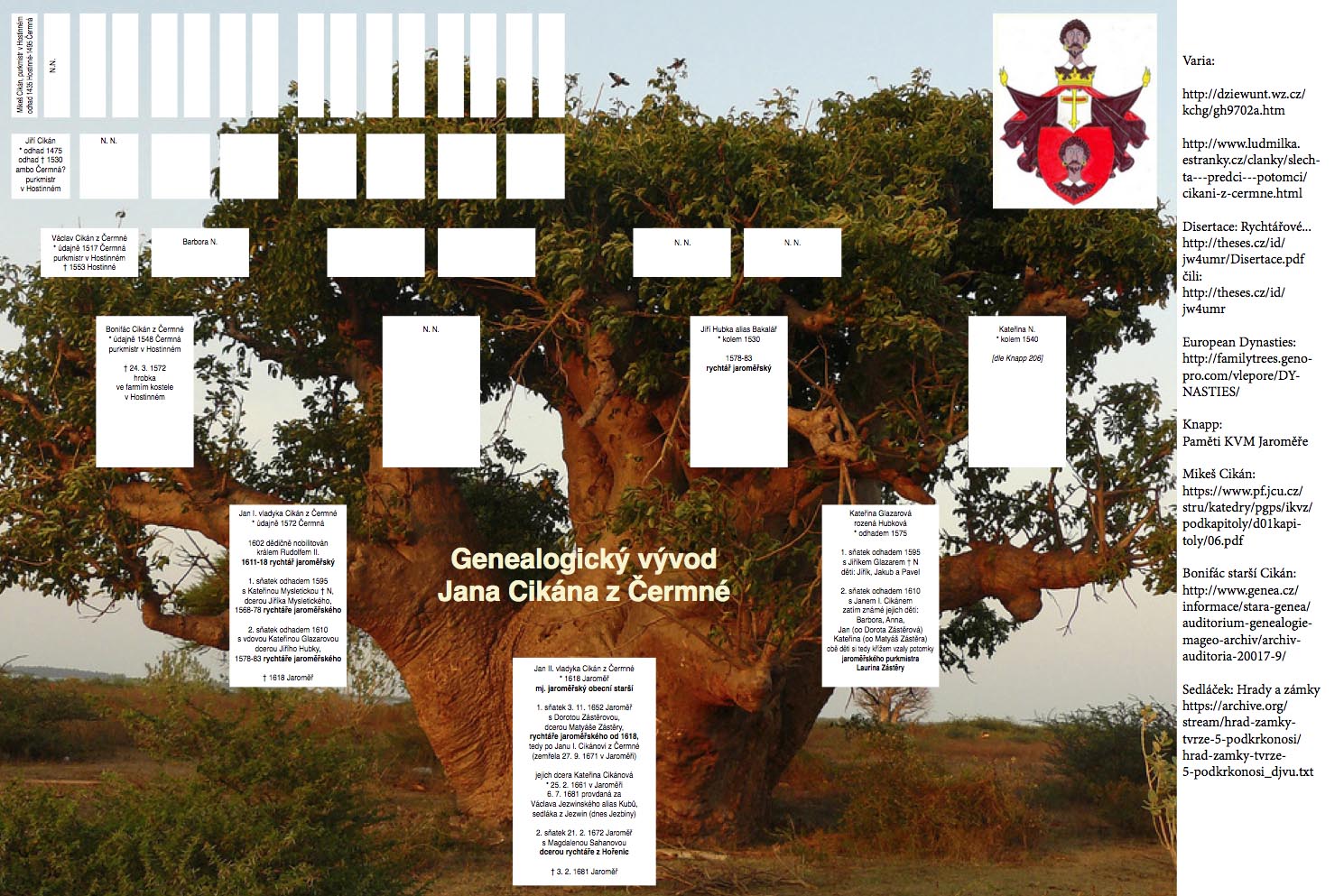 A v tomto výjimečném případě mých Cikánů z Čermné – zatím víc stromečků 3. řádu nemám bohužel zapotřebí, snad až se začnu hrabat v urbářích a gruntovnicích, přijde řada i na další větve – jsem ke kořenům přenesl dokonce 2 pokolení ze stromečku 2. řádu, tedy od tátových Riedlů. Aby se mi tam vešlo více poznámek do těch okýnek.