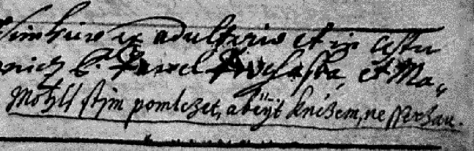zedir píše:Kdysi jsem narazil na tento případ upřímnosti faráře a zaujalo mě to, i když nechápu konec, který mi nedává vůbec žádný smysl. Chápu to tak, že bylo pokřtěno nemanželské dítě, narozené z incestu, otec byl však označen a farář k tomu dopsal "mohli s tim pomlczet a bëÿt knězem, ne sserzan?" Ať nad posledním slovem přemýšlím jak přemýšlím, projíždím google nebo vokabulář webový, nedává mi to smysl a to slovo nechápu, takže to chce další oči...