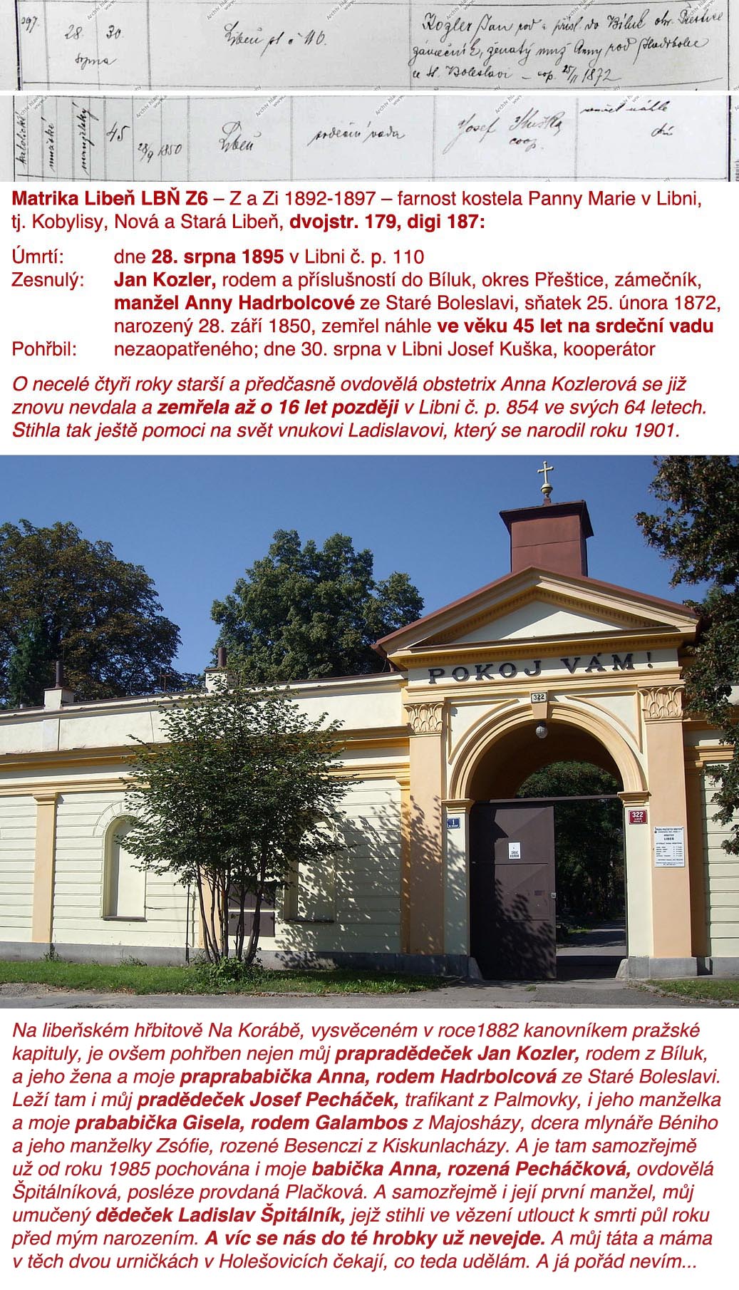 Mně maminka – mimo jiné – řekla, ještě než umřela, že její děda a takto můj praděda Alois Špitálník umřel v roce 1952, a samosebou podle ní v naší Libni, kde jinde. Tak jsem si to zaznamenal a čekal jsem, až to přijde na řadu, matrika dodnes ještě není na Chodovci.