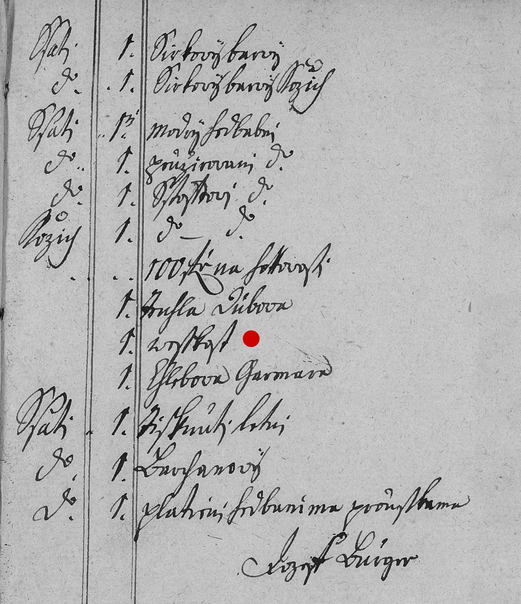 V soupisu pozůstalosti je slovo, které čtu možná špatně jako