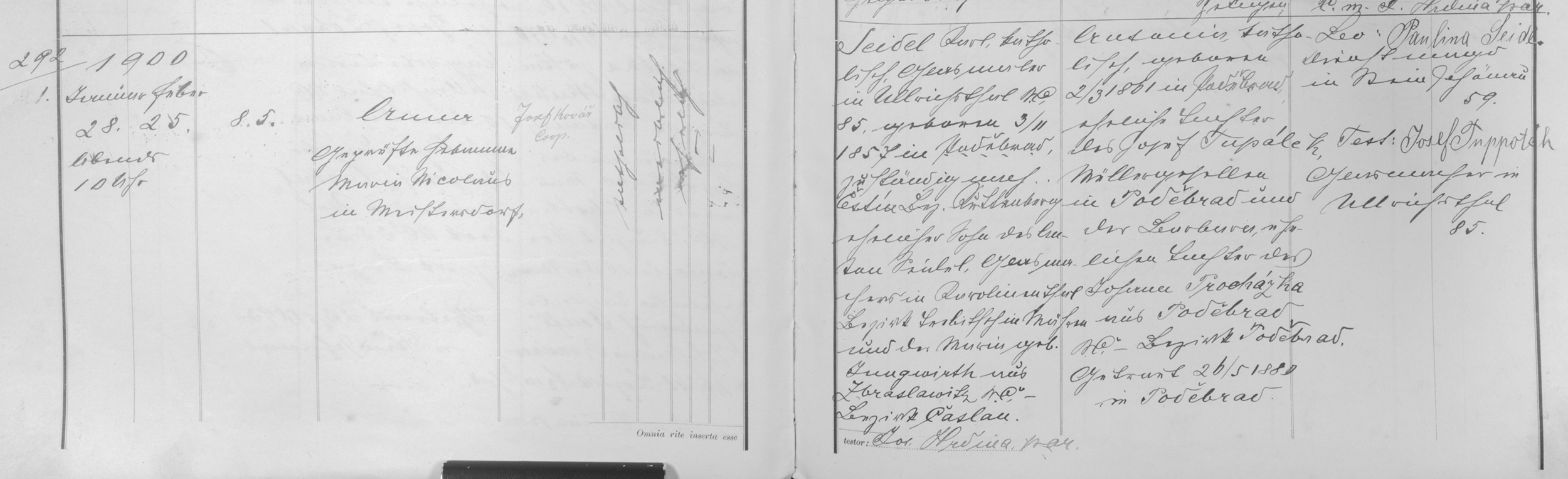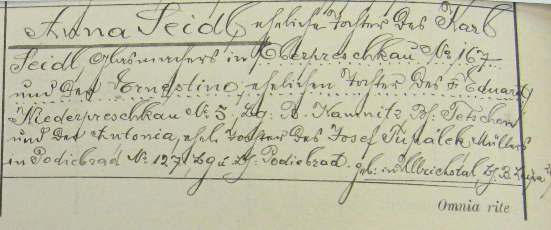 Z matričního záznamu jejího narození bezpečně vím, že biologickými rodiči byli Karel Seidl a Antonie ro. Tupálková - tedy 1.a3. osoby ze záznamu úmrtí.