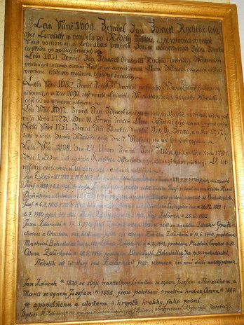 Léta páně 1682 zemřel Jakub Žďárek, též rychtář na svatého Mikuláše a jest pohřben na hřbitově a v roce 1690 zase umřela Ludmila, manželka jeho, též na svatého mikuláše a jest též na hřbitově pohřbena.