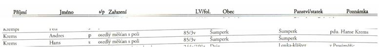 http://actapublica.eu/matriky/brno/proh ... ?strana=412.) na pravé straně, sedmý zápis shora, Libor syn po zesnulém Jiřím Kri...,Marianna..., č.p. 9