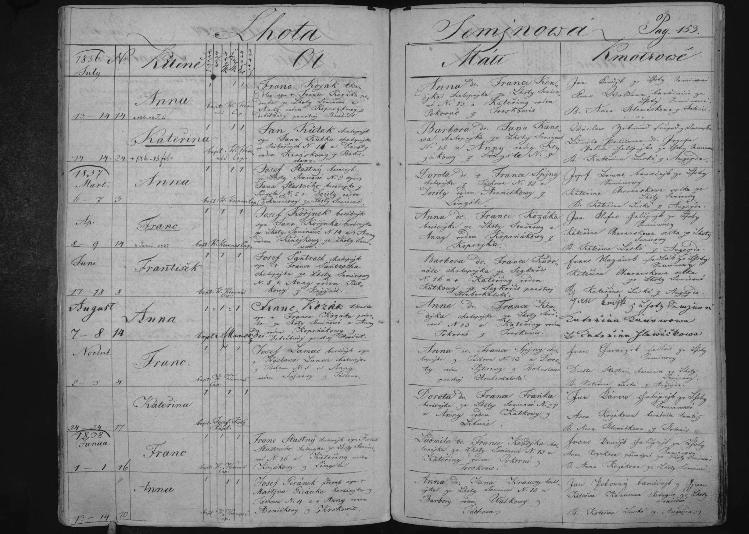 Dorota se pak samozřejmě mohla narodit i jinde - u rodičů Anny (to ale bývá obvyklé u prvních dětí, nikoli u posledních). Zkuste taky pohledat, jestli se Dorota nenarodila hodně brzo po svatbě Anny a Františka, případně, jestli se nenarodila, jako nemanželská dcera Anny. František ji pak po svatbě mohl legitimizovat a tím se jí status změnil na manželskou a u jejích dětí tak mohla mít zapsaného otce.