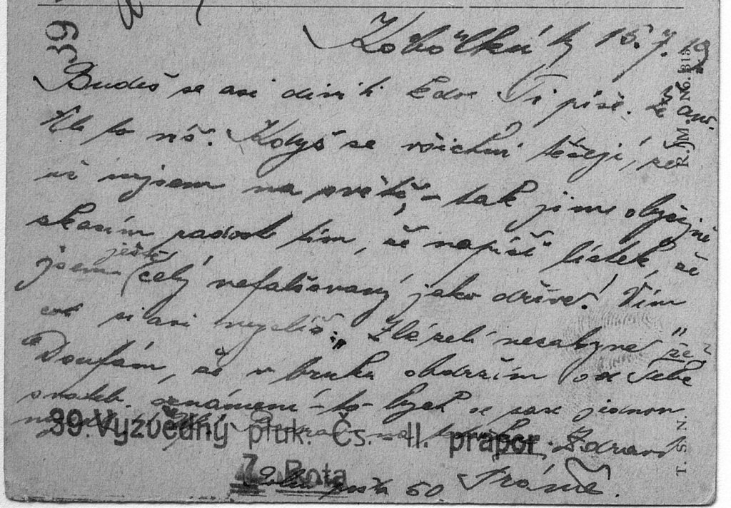 Každopádně po přečtení považuji pohled z 39. pluku za pohled od někoho jiného... podle textu a i podpisu.. o měsíc později je styl jiný a i jinak F u podpisu...