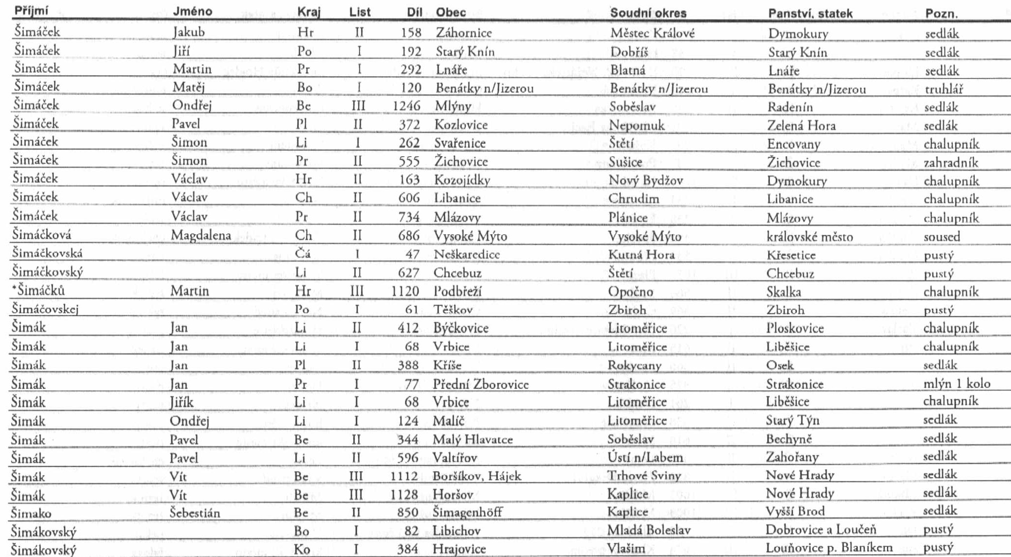 Láry Fáry píše:Dobrý den, prosím pěkně o příjmení ŠIMÁČEK/ŠIMÁK.