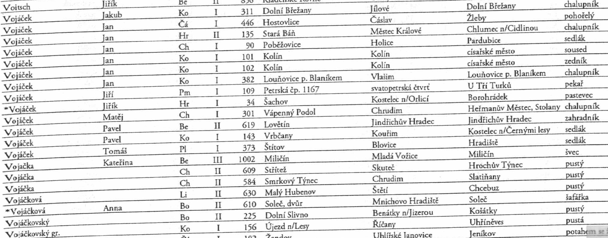 chtěla bych Vás poprosit o vyhledání příjmení Vojáček.