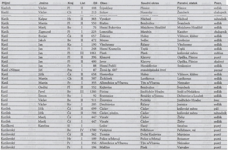 Dobrý den, Kudílek/Kutílek - viz příloha, Kudílek přímo se nevyskytuje, tak jsou tam dva podobní, Kutílků se pár našlo, plus další podobná příjmí.