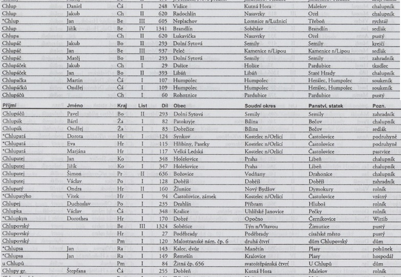 chtěla bych Vás požádat o vyhledání příjmení Chlupsa (Chlubsa, a setkala jsem se i s variantou Chlupš). Zřejmě dnešní Ústecký kraj a okolí. Předem mockrát děkuji, Petranová