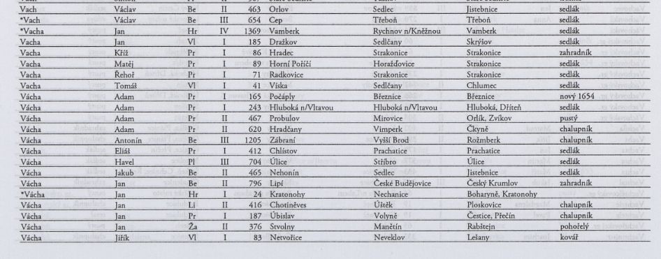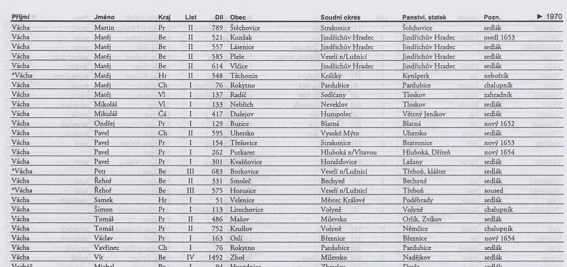 chtěl bych poprosit o vyhledání příjmení Vácha. Ve starších matrikách je psáno Wacha, jednou i Wach. Jednalo by se o tehdejší kraj bechyňský, oblast táborska a asi hlavně písecka, snad vsi Nikovice, Něžovice, Dmýštice,Jickovice a i orlické či zvíkovské podhradí. Já se předem omlouvám, jestli těch údajů bude dost, ale nespěchám na to. V dnešní době koronavirové není kam spěchat.