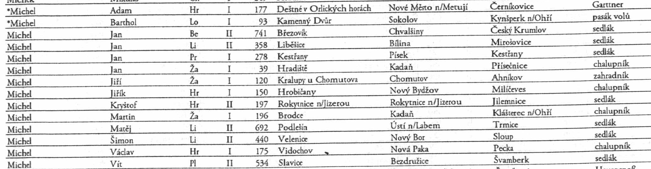 chtěla bych Vás poprosit o vyhledání příjmení Michl, přip. Michel.