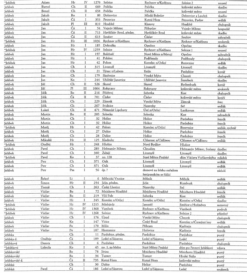Poslední nalezený výskyt mlynář Jiří Jeřábek v Nové Vsi (Litoměřicko) v roce 1685 (svatba).