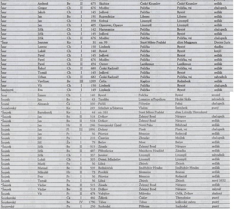 mandoney píše:Dobrý den, prosím o vyhledání příjmení ŠOUREK (ŠAUREK).