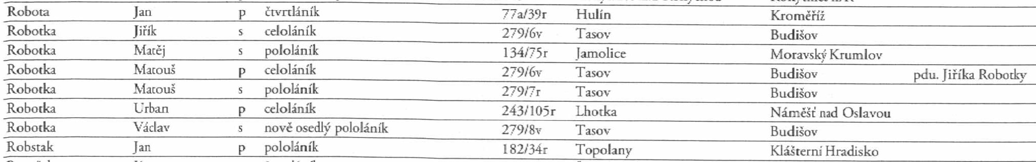 Eross18 píše:Dobrý den, bylo by možno podívat se na příjmení Robotka? měl by se tam vyskytovat jen 6x. vzhledem k tomu, že jsem ztratila stopu poprosím všechny záznamy. děkuji!