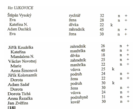 Příjmení v té době zdaleka nebyla ustálená, takže je možné, že Dušek/Duchek je pozdější Dufek. Ale je také možné, že se nějaký Dufek přistěhoval na jeden z mnoha pustých gruntů po třicetileté válce. V GR BR jsou jen dva Dufkové, Dušků a Duchků je tam hodně. Podívala jsem se na I-N Dobrovice 27 ze začátku 18. století – jsou tam jen Dufkové.