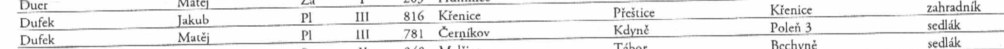 Na panství Dobrovice podle SPPV a GR BR žádný Dufek není. Podle SPPV je ve dvoře dobrovickém Václav Duchek – p(poddaný) – pohůnek - 16 let – n(ekatolík), + (s nadějí na obrácení) a ve vsi Tejnec (Týnec) je Jiřík Duchek, podle BR Jiřík Dušek.