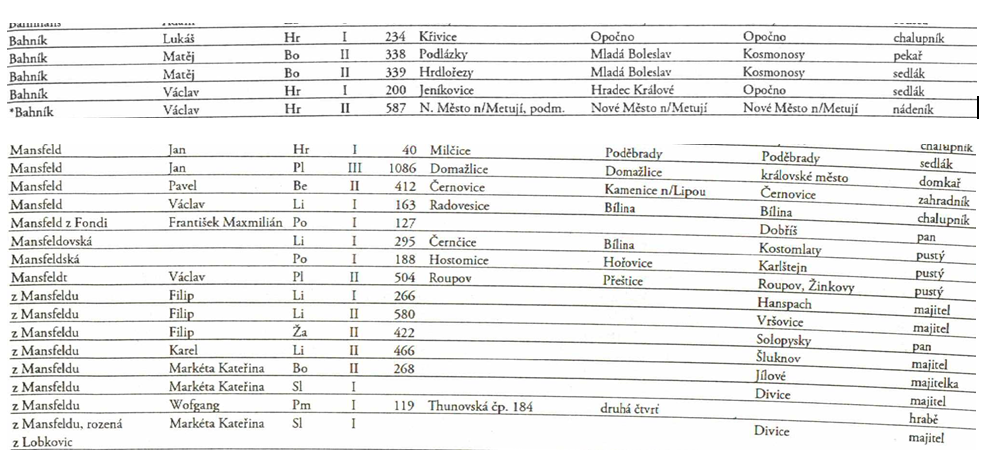 mohu poprosit o jméno Mansfeld (Pěčice, Kosořice), Tomášek (Újezd u Luštěnic),Kettner, Bahník(Písková Lhota, Krnsko)?