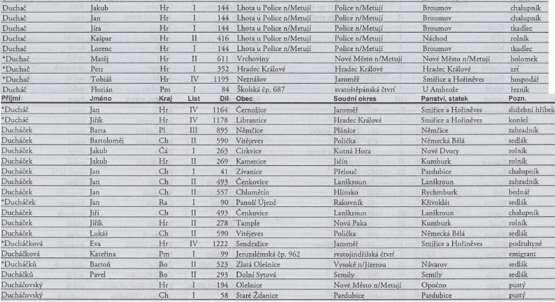 Zkuste přílohu, jestli tam něco najdete, nebo jestli hledat i mezi dalšími variantami jako Duchek a podobně