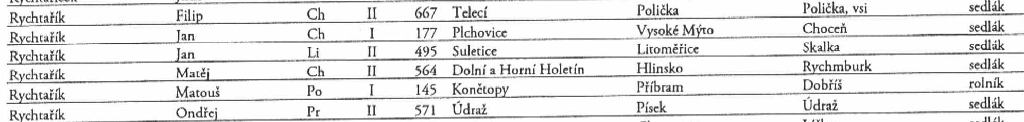 Karla55 píše:Menya píše:Mohla bych poprosit o vyhledání příjmení Rychtařík? Předem děkuji. Posledního doloženého mám poč. 18. stol. v Kostomlátkách.