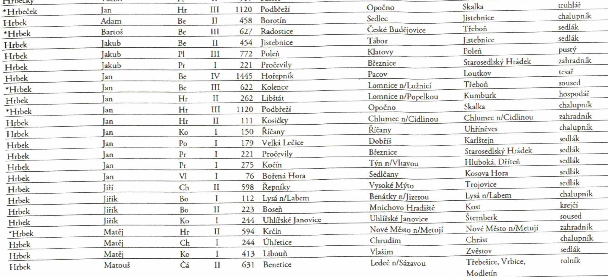 mohl bych poprosit o dohledání přijmení Hrbek na Rakovnicku a Plzeňsku (Čistá a okolí)?