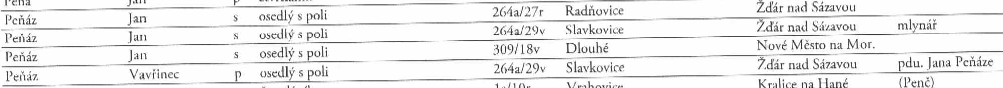 mohl bych poprosit o vyhledání příjmení Peňáz (Peňás, Peniaz, Pennias). Děkuji.