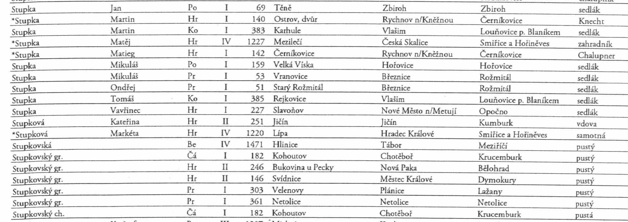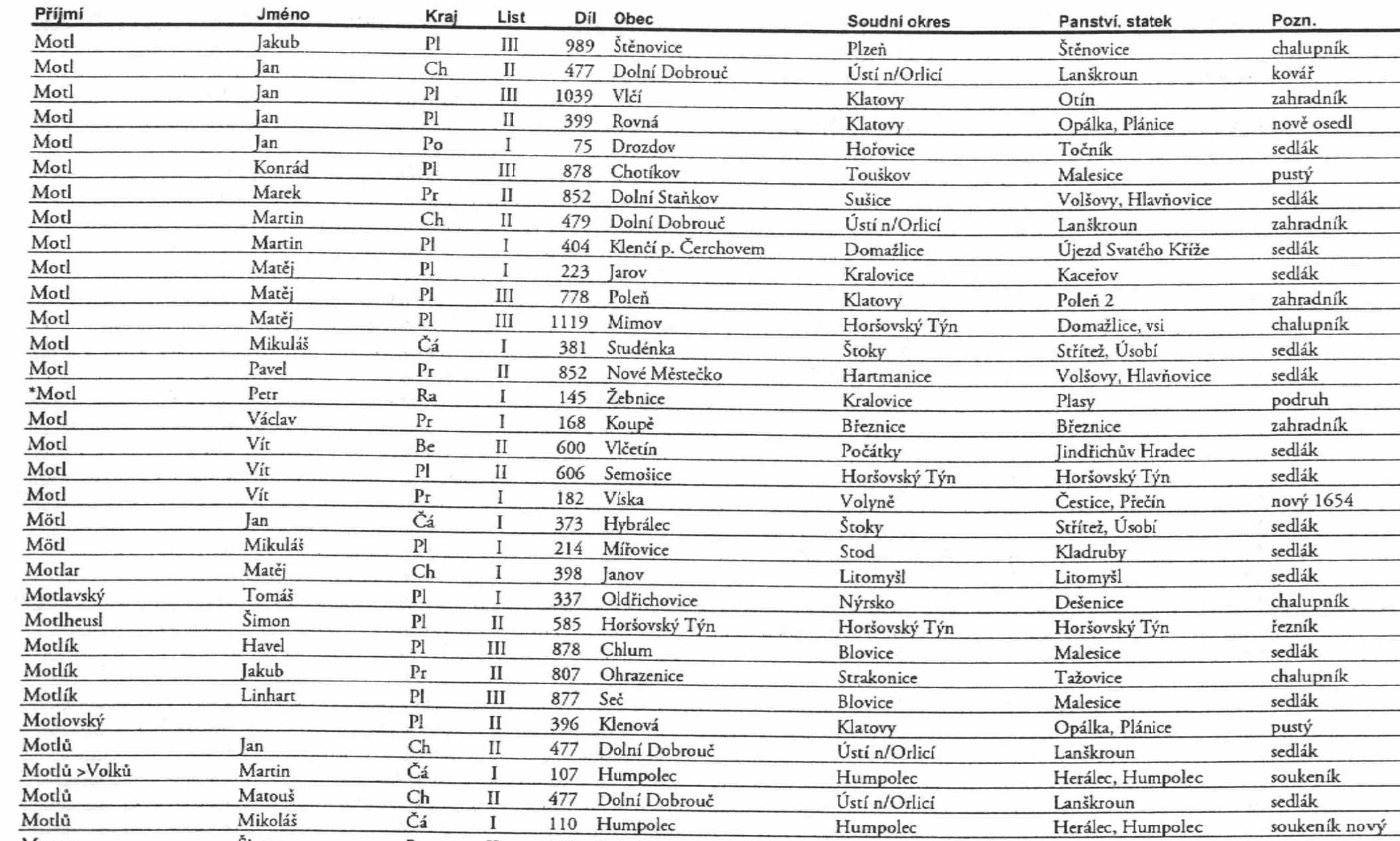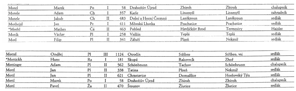 mohl bych poprosit o vyhledání jména Stupka, resp. Mottel (též Motl) na Plzeňsku v okolí Ejpovic? Předek je psán jako Mottel neb Stupka