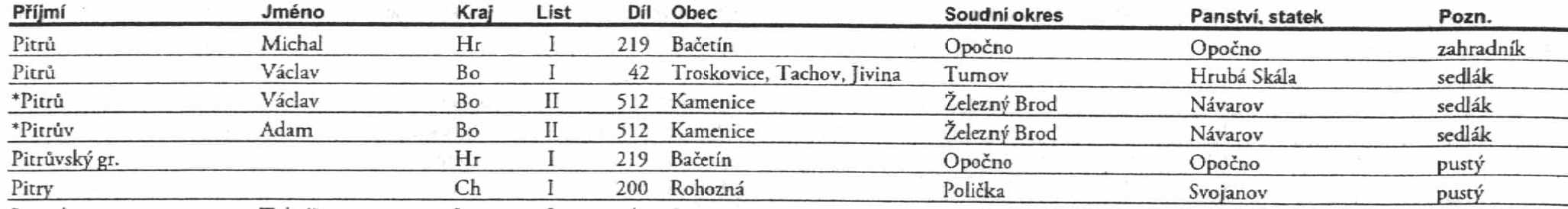 mohu poprosit o vyhledání v berní rule příjmení Pitr , Pitter?