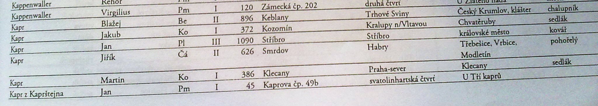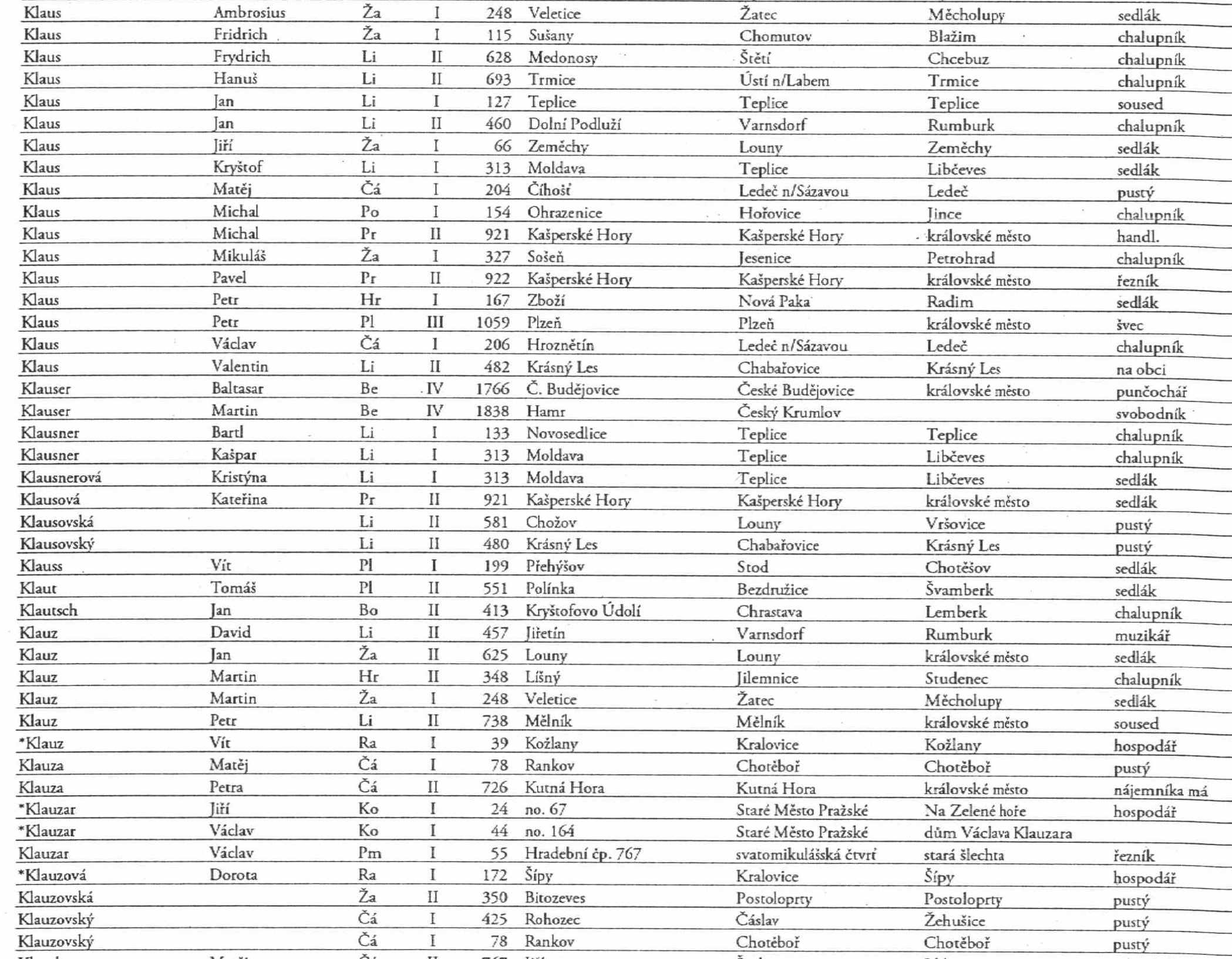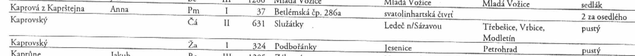 MaK píše:Dobrý večer, nechci Vás zbytečně zdržovat, už jsem získala nějaké informace od Karla55 z BR pro Boleslavsko,ale pak jsem se v knize ,,Váš rodokmen krok za krokem" dočetla, že v BR jsou uváděni hospodáři postupně podle velikosti pozemků a na konci seznamů i bezzemci. Já jsem získala pouze ty sedláky, ale mám dohledané i jejich současníky ze stejných obcí a v BR pro Boleslavsko se nenašli, jedná se o příjmení Maštalíř( Masstalir, Marsstalir) a Kostrba (Kosstrba) pokud usoudíte, že Vaše vydání BR by mi mohlo prozradit víc, mohla byste se na ně podívat? Předem moc děkuji. Alena Myšková