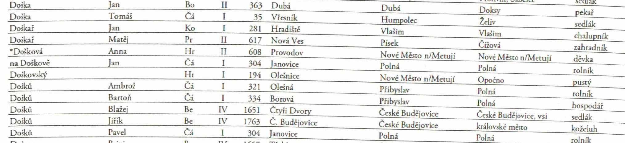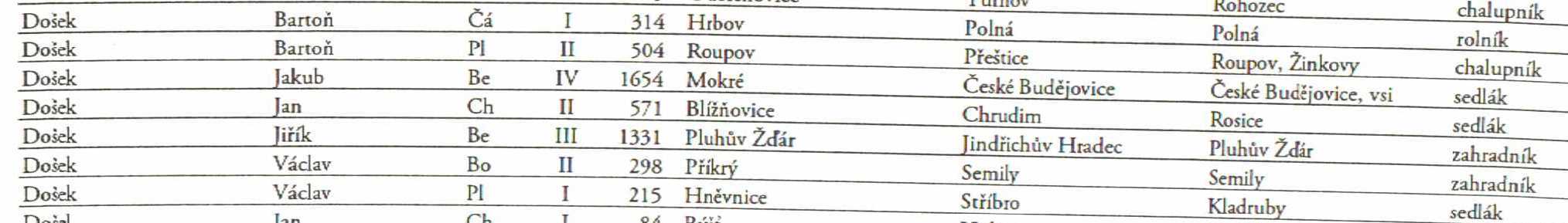 Ven_zima píše:Dobrý den, mohla bych poprosit o příjmení Došek (Dossek, Doschek) - mělo by to být okolí Polné/Přibyslav (Polná už v Lánových rejstřících není). Děkuji. VZ