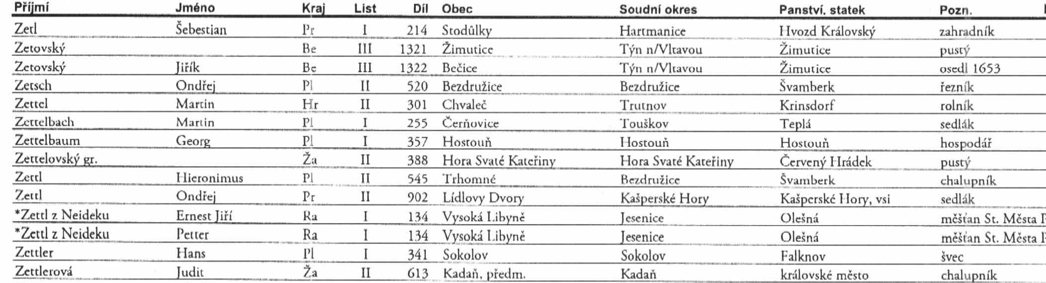 sháním se po příjmení - Zettel, Zettl, Czetl - z okolí Jindřichova Hradce, přesněji by mě zajímal Velký Ratmírov popř. zda se vyskytuje i v Lodhéřově či Studnicích.