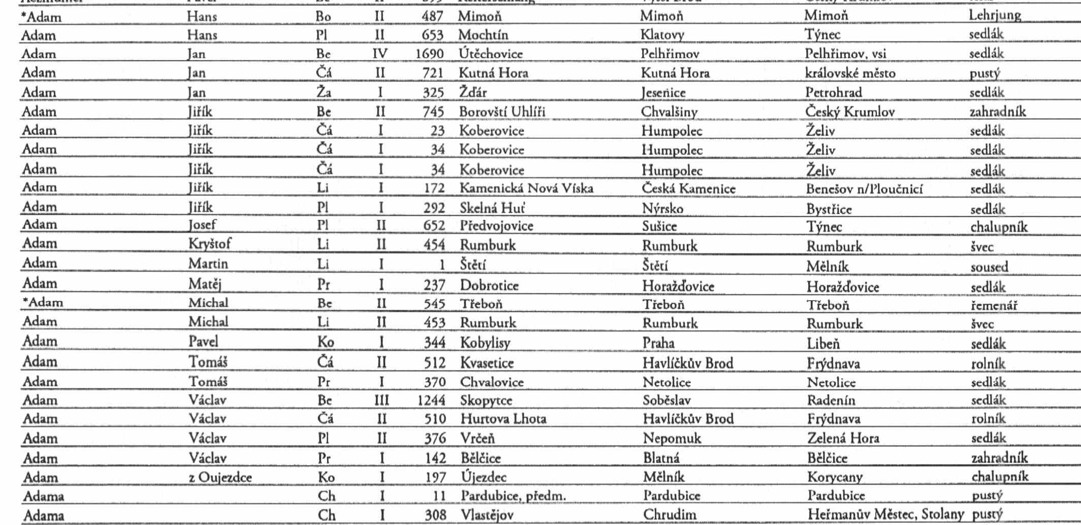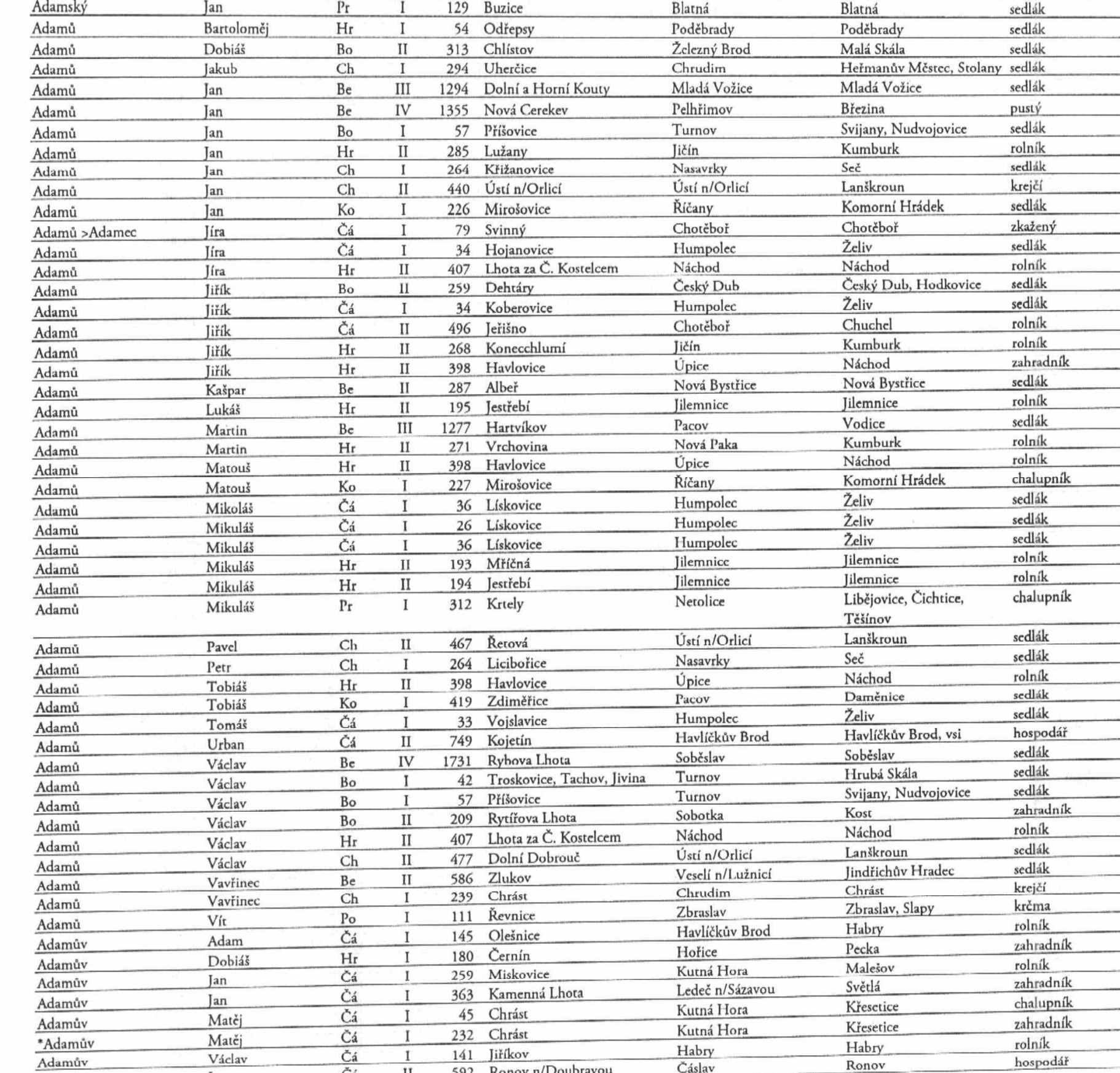 jirkakr píše:Dobrý den, mohl bych požádat o vyhledání příjmení Adamů (někdy i Adamový) v oblasti Táborska, Soběslavska? Děkuji předem. JK