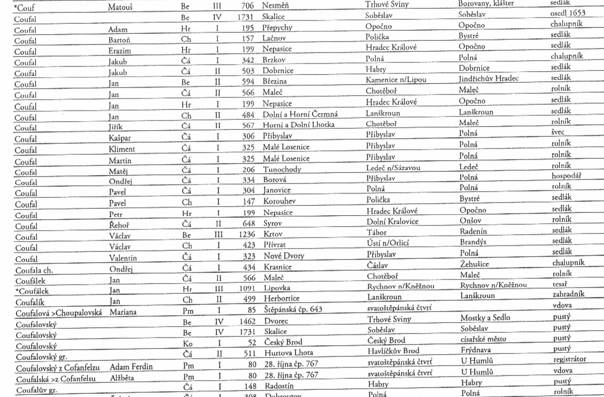 jirkakr píše:Dobrý den, omlouvám se, ale potřeboval bych ještě jedno jméno a to Coufal ve stejné oblasti Táborsko a Soběslavsko. Opět moc děkuji. JK