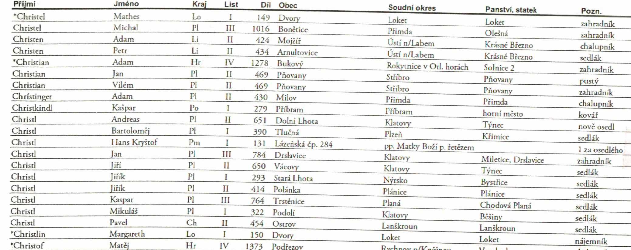 Claricia píše:Pokud bude mít někdo zájem, nabízím vyhledání příjmení v generálním rejstříku k berní rule, který vyšel v nakladatelství Libri.