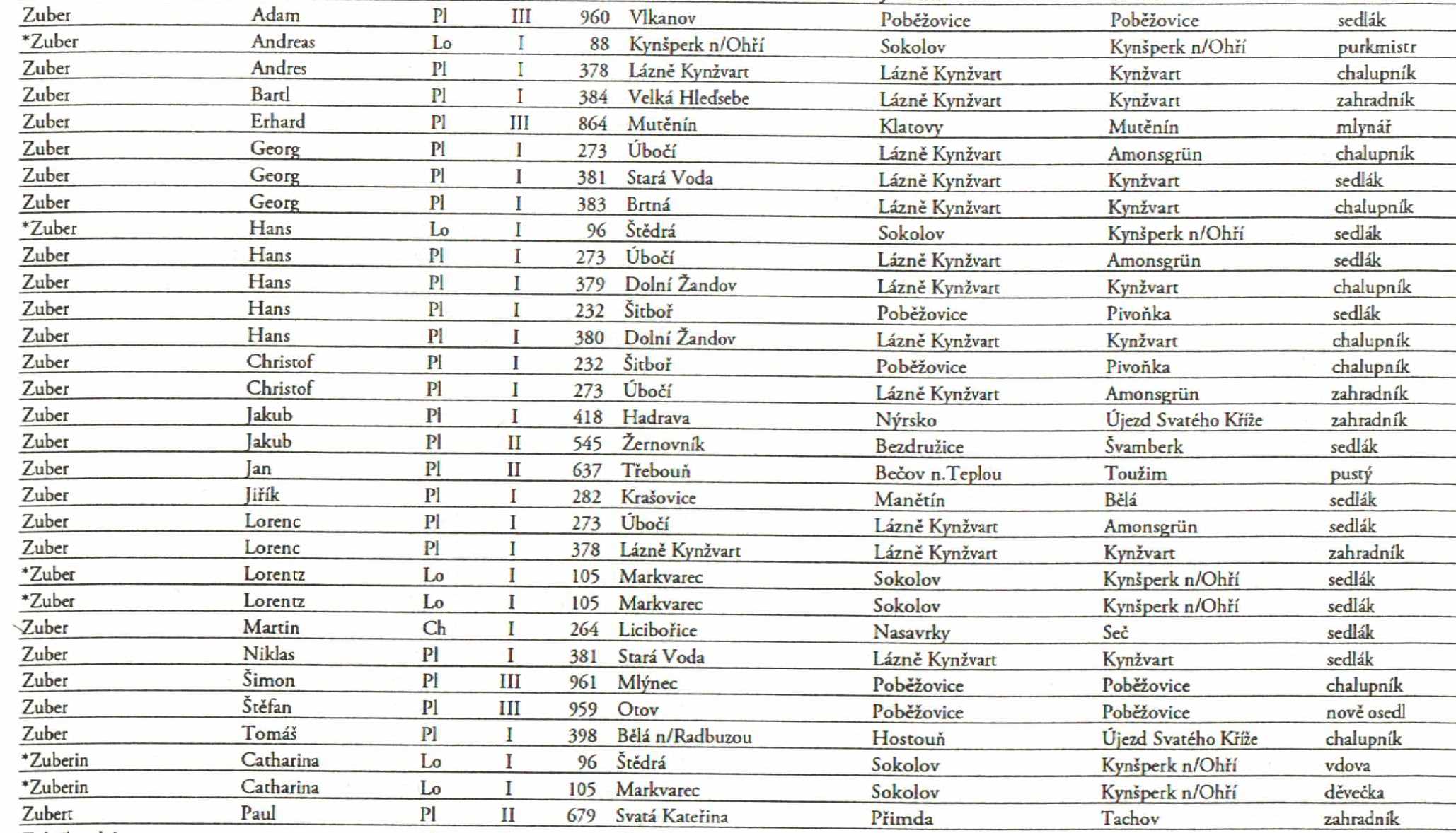 Je možné vyhledat jméno Zuber, případně Zůber v oblasti Teplicka, konkrétně obec Hrdlovka - Herrlich.