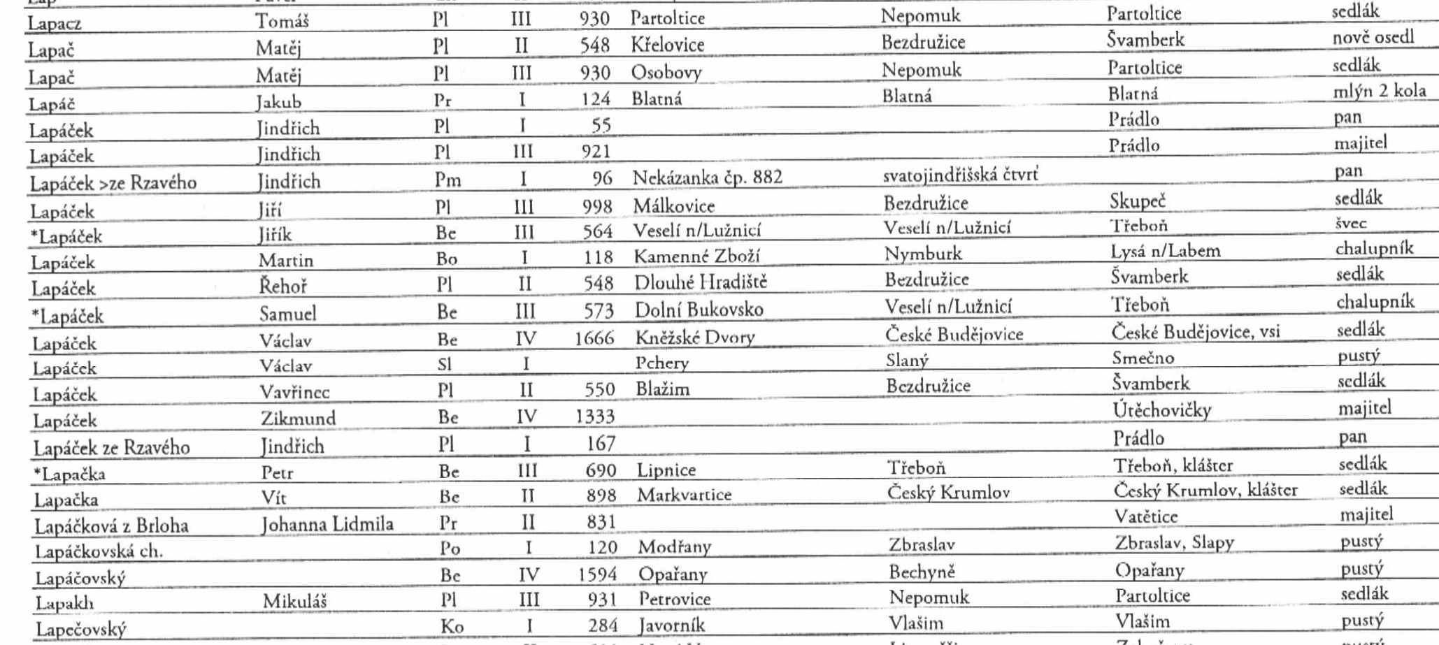 prosím o vyhledání příjmení Lapáček na Bechyňsku. Předem moc děkuji.