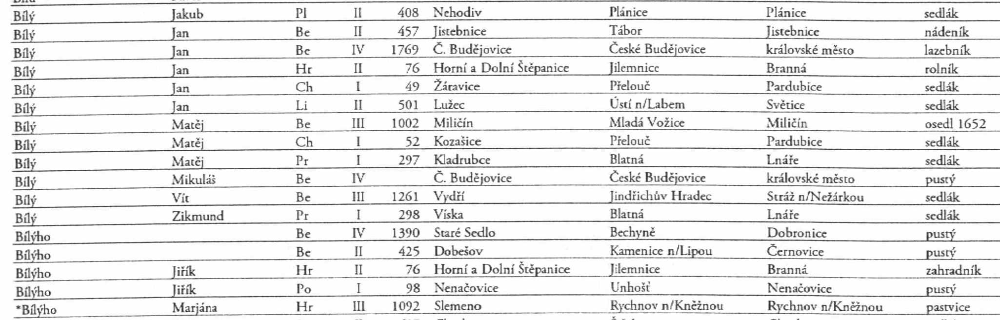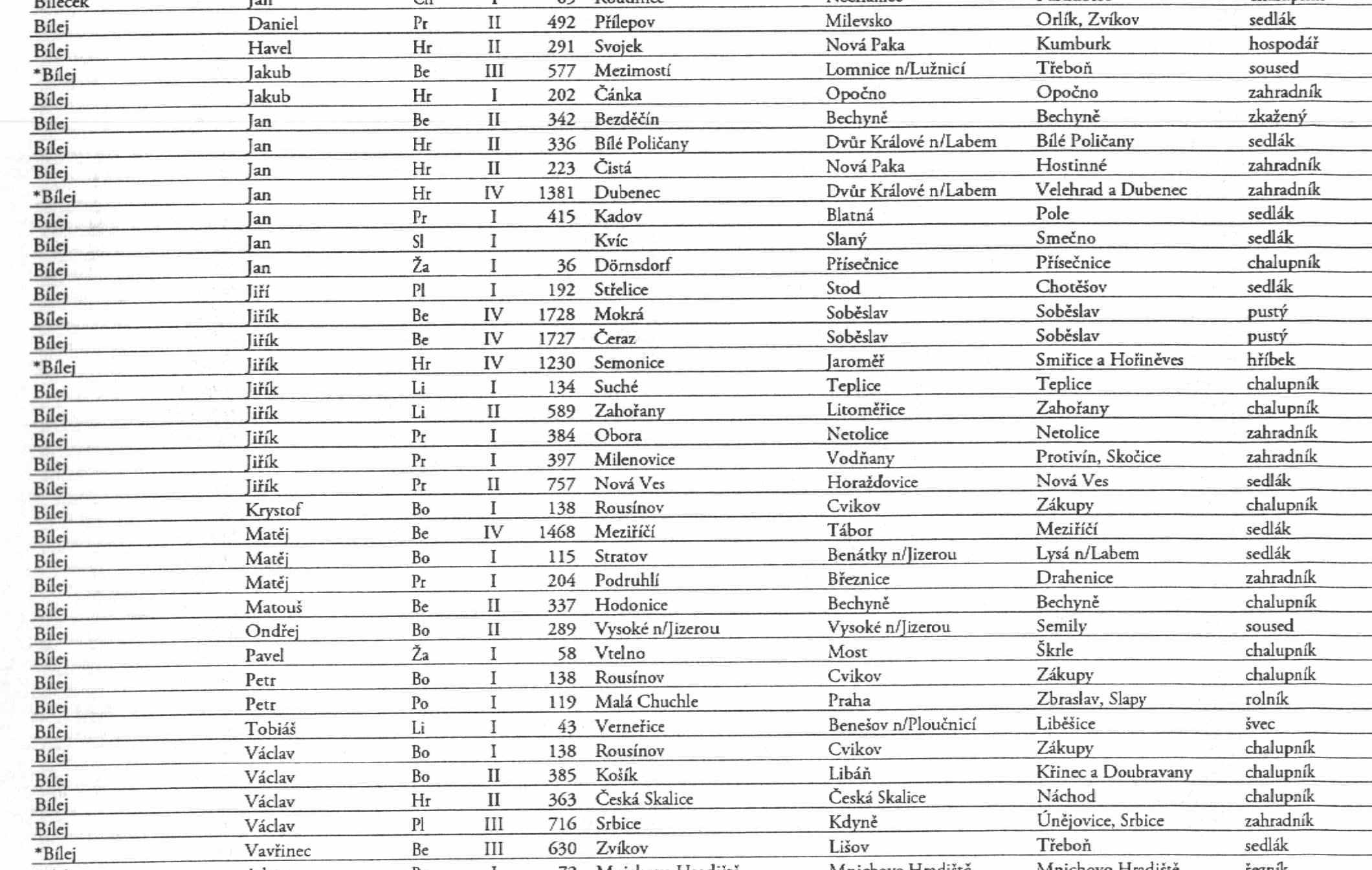 matju píše:Mohla bych poprosit o vyhledání příjmení Bílý (doufám, že tu dotaz ještě nebyl, ale nedaří se mi vyhledat, tak snad ne...) - zajímají mne hlavně východní čechy - Hradecko, ale uvítám i jiné....