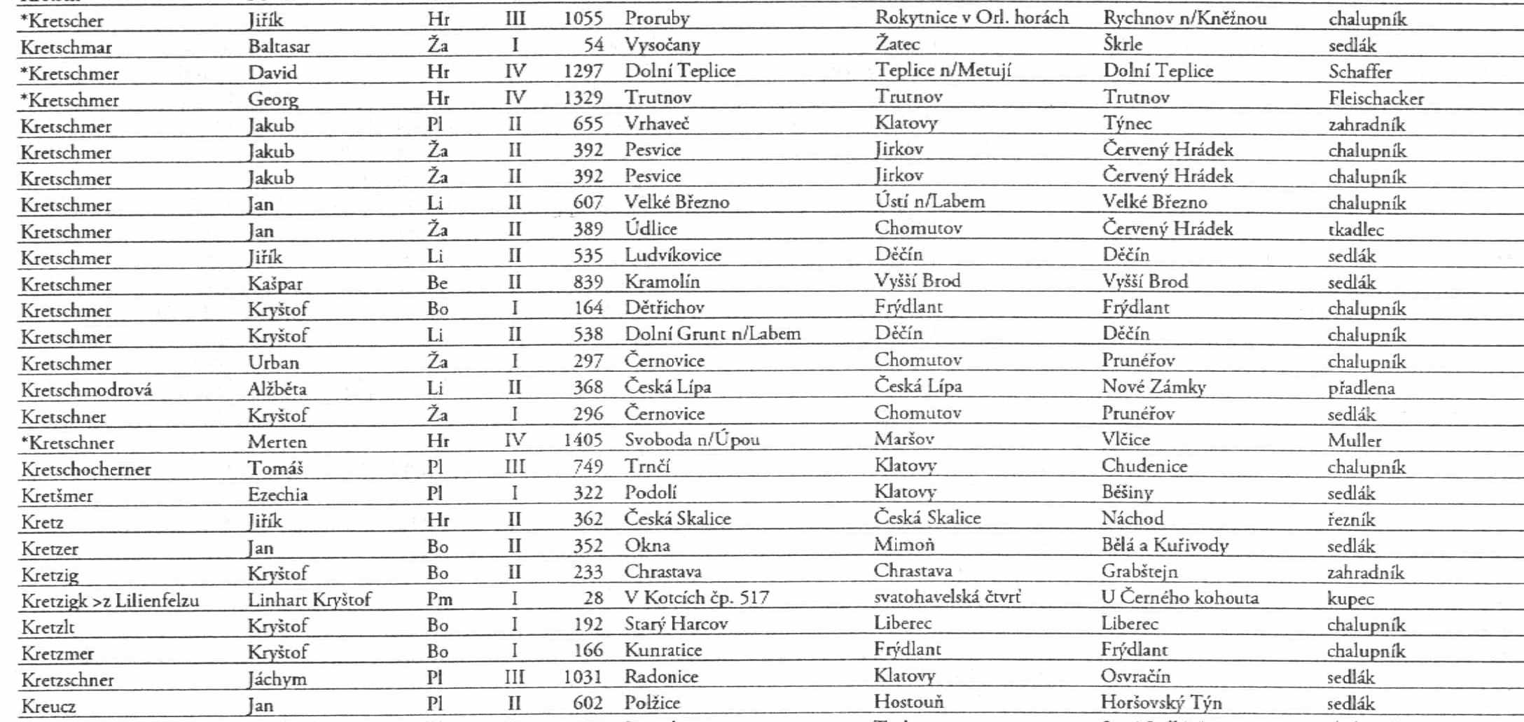 mohl bych Vás poprosit o vyhledání jména Kretschmer v severních Čechách, pravděpodobně kolem Jirkova?