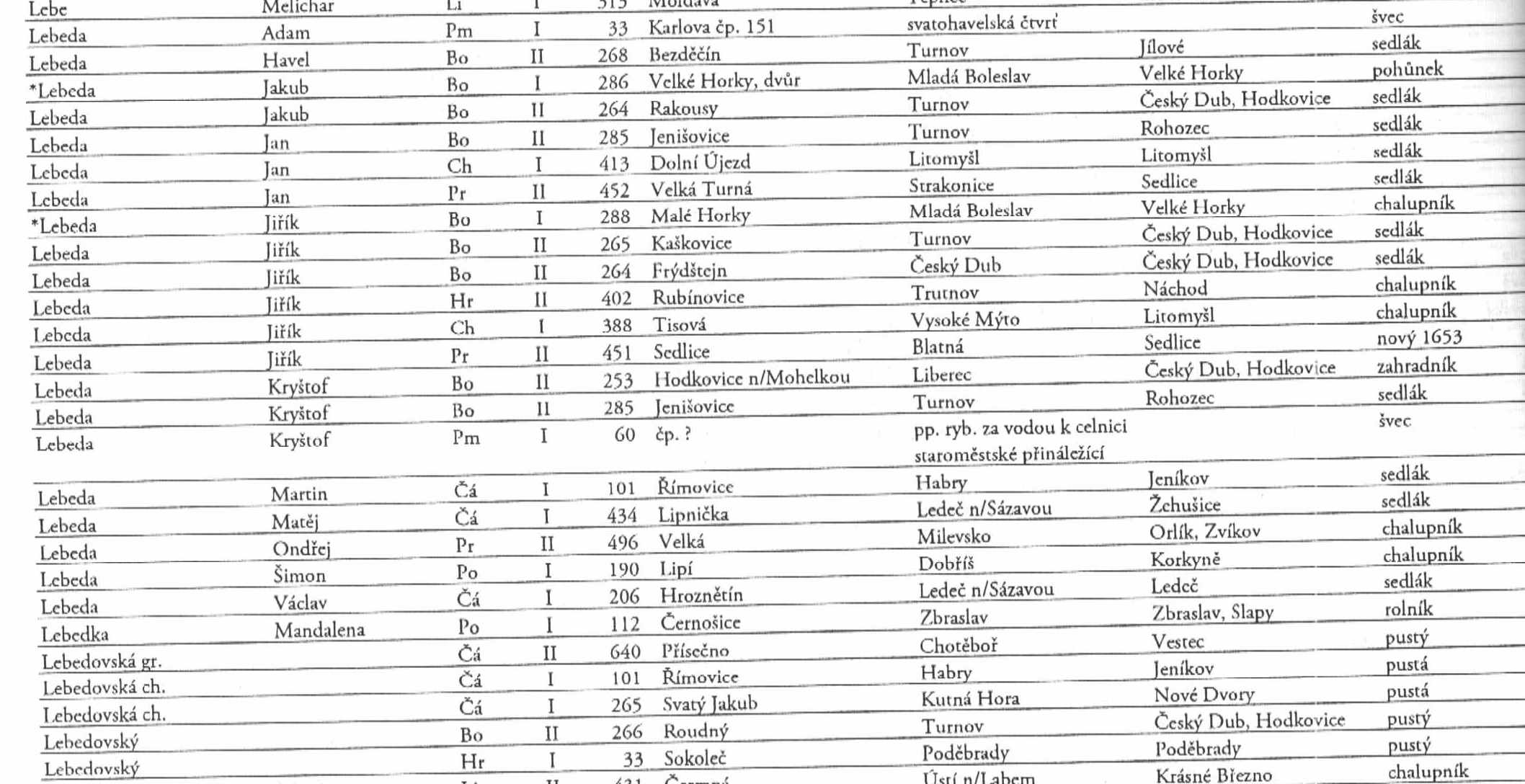 mohl bych požádat o dvě jména. 1/ Lebeda - okolí Hostomic - Berounský kraj, 2/ Karbus - okolí Horních Počernic, Chval