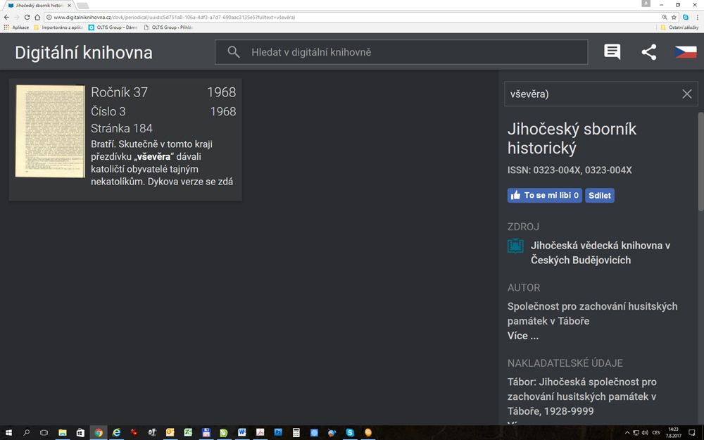 Viola píše:Navazuji na dřívější debatu s tím, že jsem pátrala dál a našla jsem v Jihočeském sborníku historickém, že "vševěra" se říkalo tajným nekatolíkům viz příloha. Nemáte o této skutečnosti někdo povědomí?