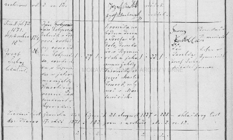 potrebovala by som poradit - mam zaznam o svadbe Veroniky Podolovej a Jana Lobpriesa, ktora sa konala v Rymiciach . Nasla som aj zaznam o narodeni Veroniky v matrike obce Rymice http://actapublica.eu/matriky/brno/prohlizec/9205/?strana=80 - teda aspon dufam, ze je to ona, lebo sa mi zda, ze otec jej matky ma uvedene ine krstne meno, hoci v oboch pripadoch je uvedene, ze ide o mlynara z Martinic. Pre uistenie sa o jeho krstnom mene a priezvisku by som chcela najst zaznam o svadbe Veronikinych rodicov - ale bohuzial v tomto rukopise viem prelustit zvacsa iba krstne mena a niekedy priezviska v danej matrike sobasov a mozno aj preto sa mi ten zaznam najst nedari. Zatial to je pre mna rovnocenne cinskym znakom.