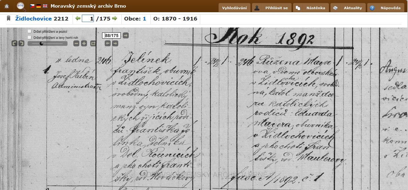 Dali by se hledat i rodiče (Franz st. a Nováčková) v matrice oddaných, ( to s mně zdá nejisté, svatba mohla být u Nováčků někde v okolí) a v matrice zemřelých - bohužel pro Dolní Kounice tam není digi moc velký časový prostor.