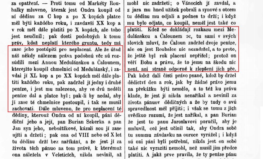 Ten text z obrázku z 16.století ale musí taky existovat v originále, když ho někdo přepsal do tištěné podoby, vypadá to na nějaký soudní spor, který se Čalouna týkal jen okrajově, takže by někde mohla být i smlouva mezi zmíněným Čalounem a Annou Medulánskou (čistě teoreticky).