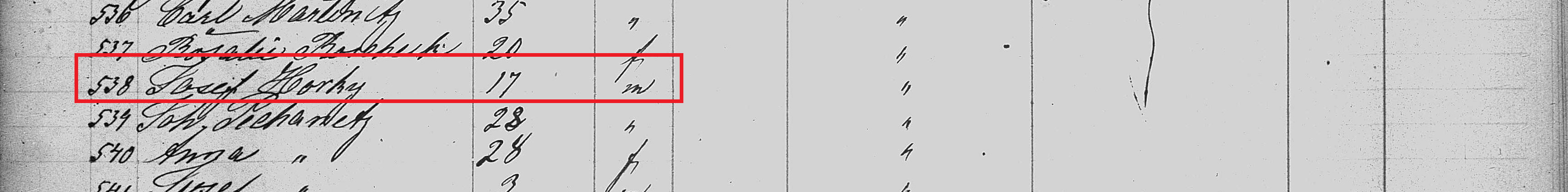 Propátral jsem proto spousty lodních knih imigrantů do New Yorku z této doby a konečně jsem našel záznam (v příloze), že lodí SS Union 28.5. 1870 dorazil do USA Josef Horky, kterému v té době mělo být odhadem 17 let - více informací bohužel v lodním manifestu není.