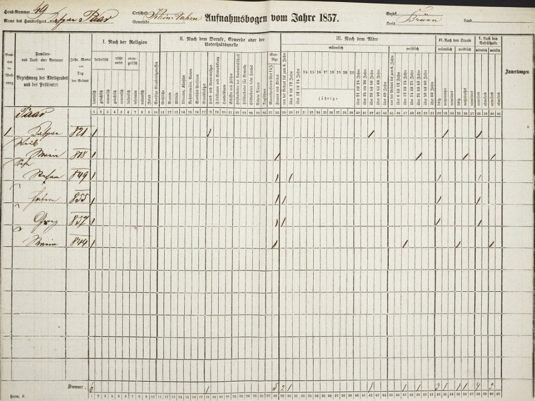 http://actapublica.eu/matriky/brno/proh ... ?strana=61). V letech 1832-1834 žila patrně v Ořechovičkách. Za svobodna chodila denně do práce na stavbu „modřické“ dráhy (severní dráha z Vídně do Brna). Provdala se za chudobného zednického tovaryše - domkaře z Ořechoviček (naroz. na panství Sokolnice), později mistra - Kašpar Paa/ár. Za roboty pracovala na statku v Tikovicích. V roce 1844 se jim narodila dcera Marie. Nejpozději od 11. srpna 1847 žila v Ořechovičkách na čp. čtyřicet devět, kde se jí narodila dcera Franciska (