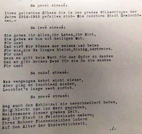Zdravím, prosím o opravu přeloženého textu z němčiny. Je to z pomníku 1.sv.