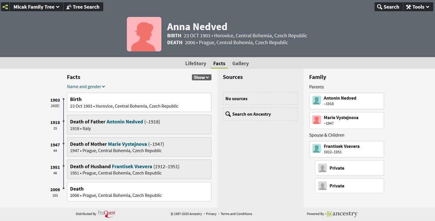 Pokud je tady někdo, kdo má zaplacené Ancestry.com, můžete se mi, prosím, podívat na jeden rodokmen?